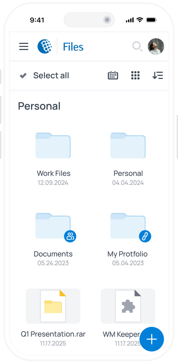 Email with spam protection and advanced features: connect your own domain and delegate access to selected mailboxes.